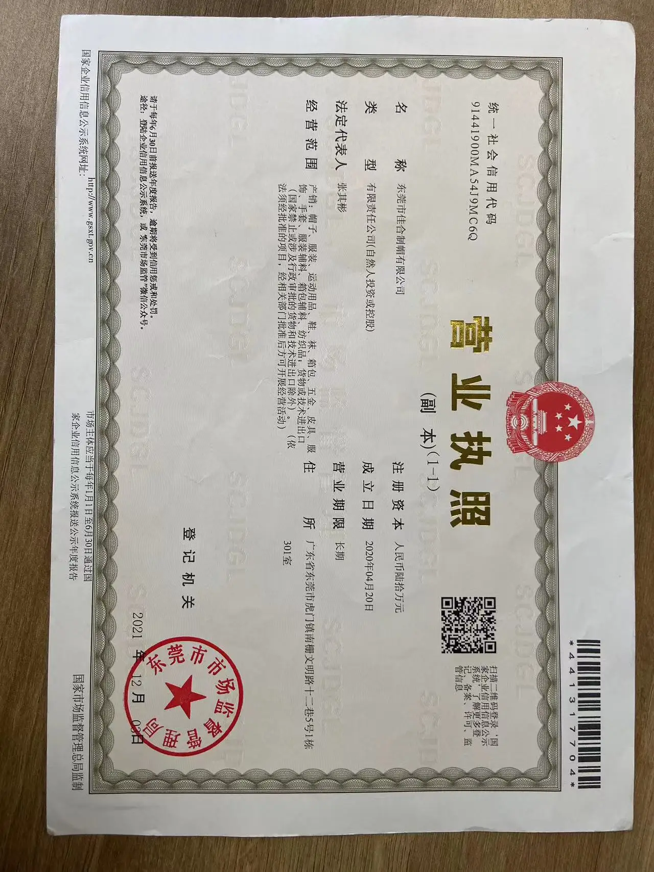 Registered address : Room 301, Building 1, No. 5, Lane 12, Nanzha Wenming Road, Humen Town Dongguan Guangdong China